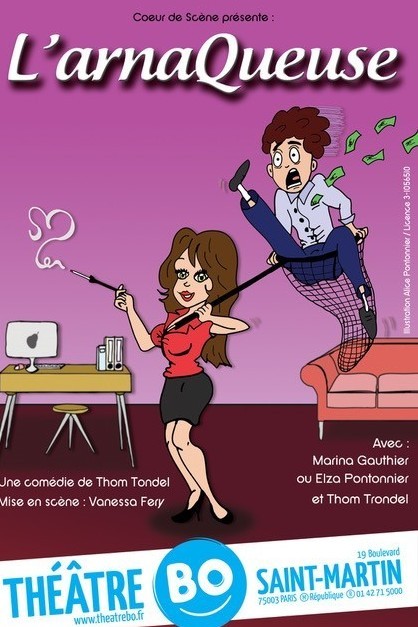 L’humoriste Thom Trondel signe avec L’arnaQueuse sa troisième comédie, au BO Saint-Martin, à Paris. Le sujet de l’arnaque à la séduction est une corne d’abondance de situations cocasses. D’emblée la pièce accroche toute l’attention par son écriture inspirée, soignée et nerveuse. Les réparties résonnent joyeusement au cœur entre éclats de plaisir et franche hilarité. Les personnages dessinés avec l’outrance nécessaire au ton enlevé sont cependant ourlés d’un rien de pudeur qui prépare le lit du rire et de l’émotion. Marina Gauthier, dont on a découvert la palette de jeux dans « Mascarades« , est pétillante et touchante dans le rôle de Clara, belle trentenaire séductrice qui gère son agence matrimoniale à la tête du client. L’auteur Thom Trondel campe un Luc en mal d’amour, un cadre respectable aux accents naïfs et aux goûts très originaux, et dont le plus grand atout serait un sens de l’humour décalé. Bref, un doux dingue marrant mais au revenu confortable de 8 000 euros mensuels… ce qui ne gâte rien !