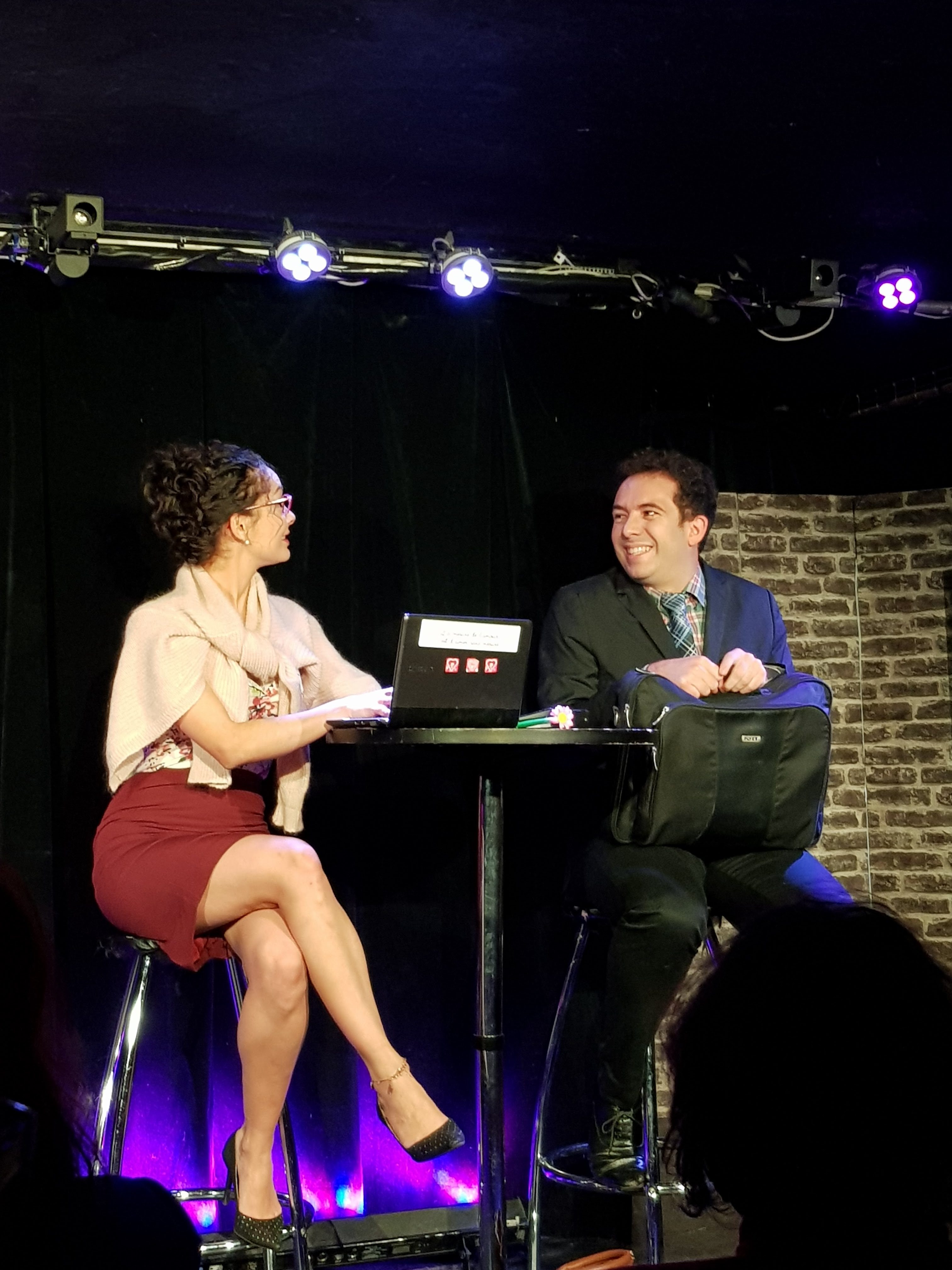 Cette comédie romantique de Thom Trondel est d’une drôlerie renversante, avec des moments d’anthologie comme la danse d’un ventre velu ou les contorsions d’un corps enfiévré. La mise en scène audacieuse et dense de Vanessa Fery est très efficace. Les situations déjantées s’enchaînent avec l’ivresse du rire renouvelé. Les dialogues s’enlacent, dansent lascivement puis s’entrechoquent, mais souvent sur des niveaux de compréhension différents, d’où avalanche de quiproquos et de décalage de sentiments. Si le rire impose sa marque avec constance, de temps à autre il se retire à petits pas derrière le cœur ému. Là devant un Luc comprenant la forfaiture de la gérante de l’agence matrimoniale. Ici devant une Clara réalisant son attachement, tardif et inconcevable, pour ce client à l’originalité attendrissante. De rebondissement en rebondissement, de délire en délire, d’aveu en aveu, les comédiens évoluent avec aisance et en nuances dans ce cadre propice à ce cœur à cœur tendre et explosif.
